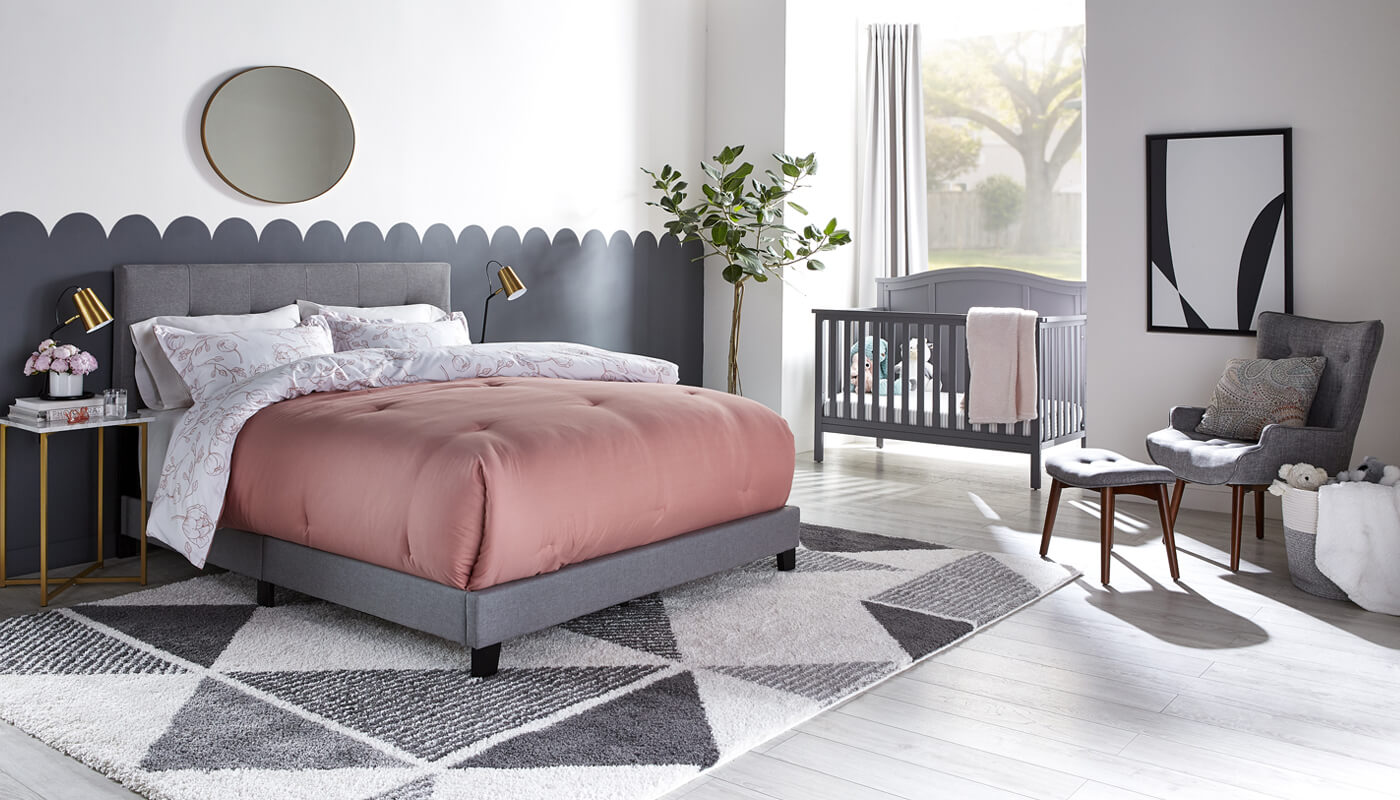 A convertible crib takes your baby from infant to toddler to little kid. Cozy up the nursery with soft rugs and clutter-hiding baskets.