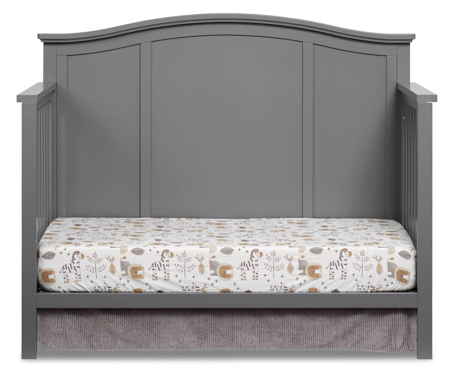 You get more value with a four-in-one crib. This one adjusts between three different mattress heights and converts into a day bed. You can even use attachable rails (sold separately), to turn it into a full-size bed.