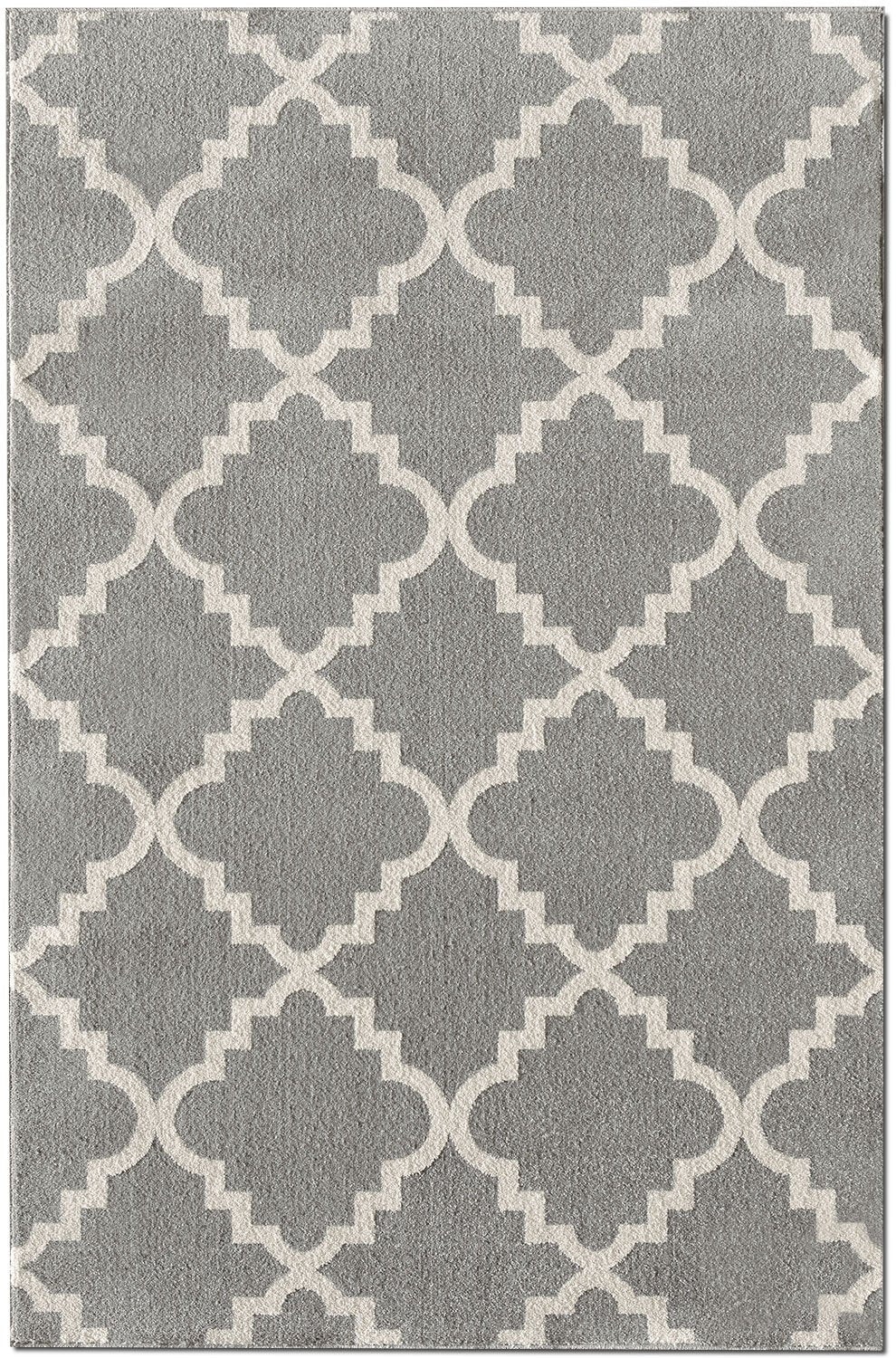 Grey and white are neutral colours that complement each other and add definition to the rug's design.