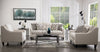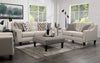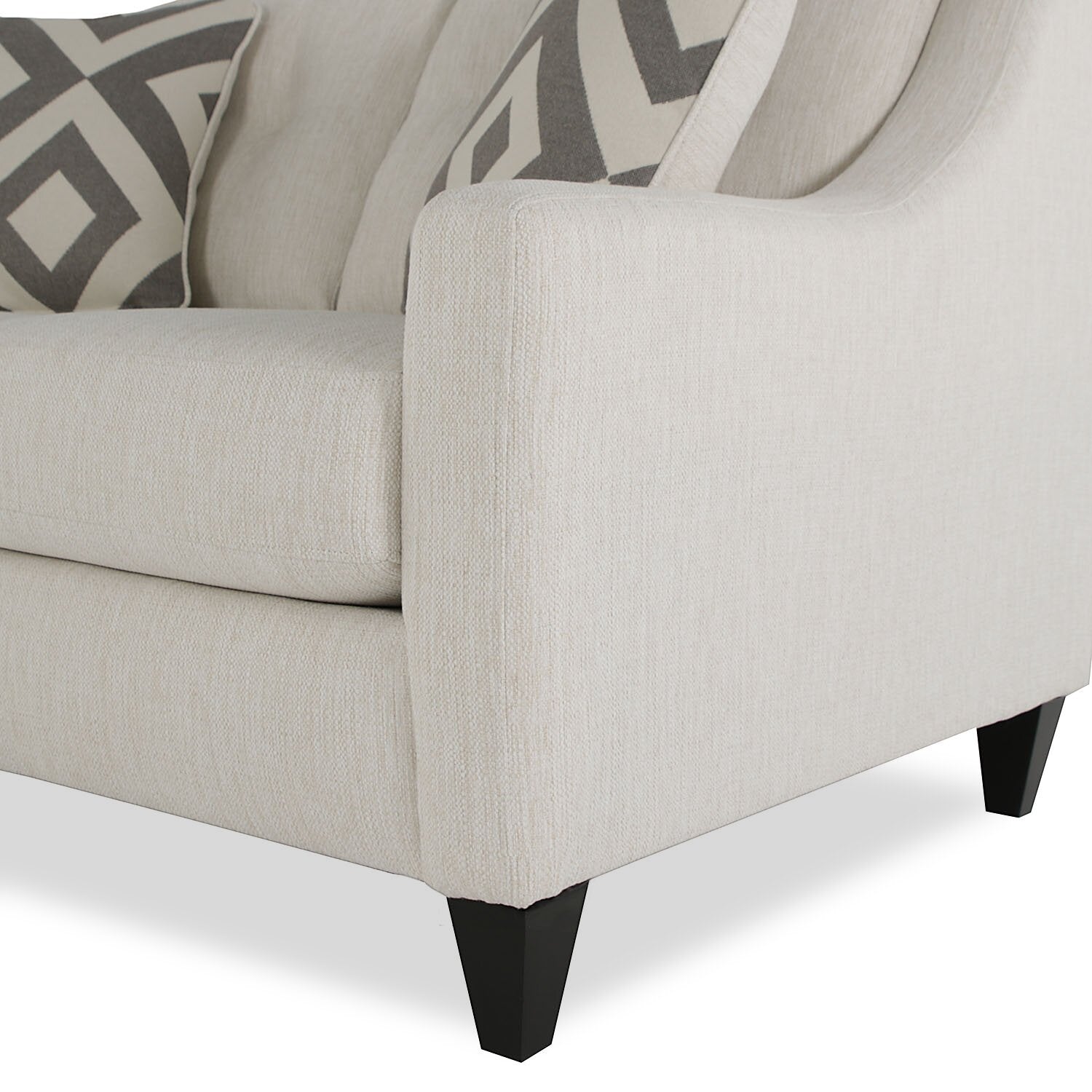 Give your living space a fashionable update with this pearl-coloured Kylie loveseat. Part of the exclusive Cindy Crawford Home collection, this piece is enveloped in off-white linen-look fabric for an elegant feel. Swooping armrests and plump cushions are outlined in matching fabric piping for a contemporary profile to suit your home's decor. Button-tufted back cushions highlight the fibre-topped high-density foam stuffed inside. With two accent pillows to provide comfort and variety, this loveseat is the place to enjoy your family's time together.