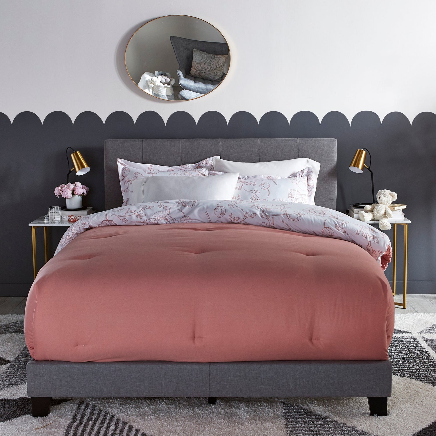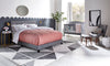 Savour the softness of this Tara queen bed. The tall headboard and apron are each upholstered in an elegant, grey linen-look fabric. This soft material lightens your room while creating a cozy space you'll look forward to nestling up against. Button-tufting and square accent stitching also provide traditional touches. However, the clean-cut design and black wooden legs mean this fine slumbering space will look equally chic in a modern setting.